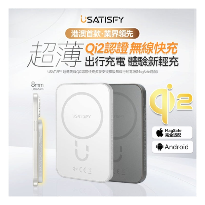 美國USATISFY 超薄先鋒Qi2認證快充多設支援磁吸無線行動電源