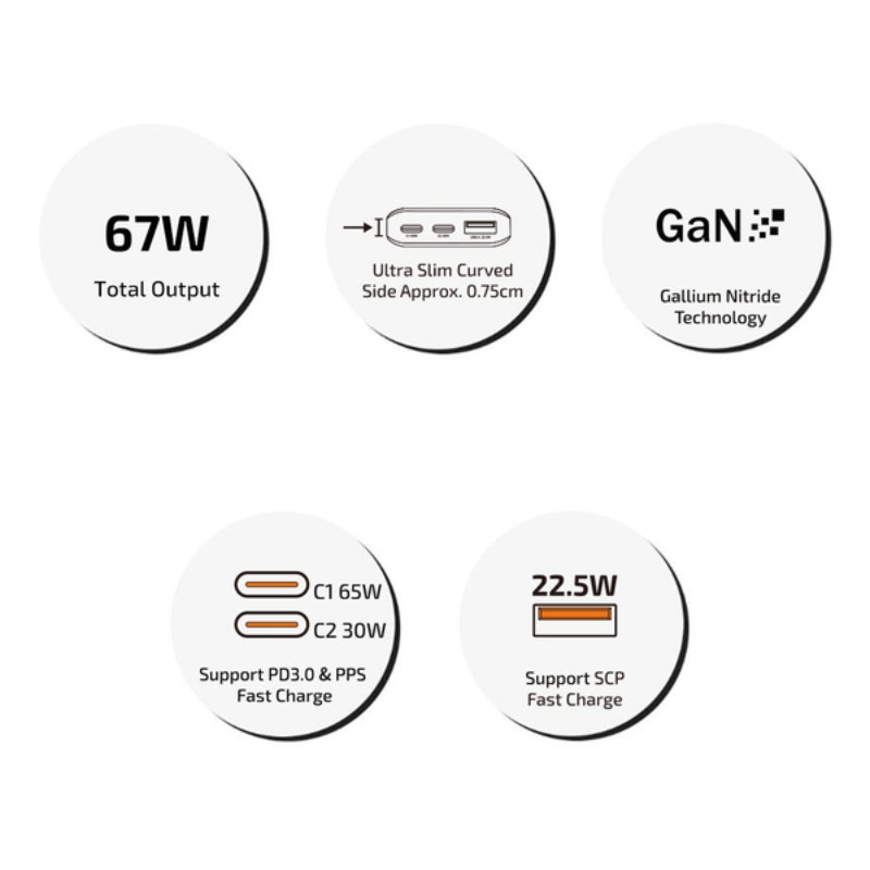 全港最細67W GaN旅行充電器* (超薄弧邊約0.75cm)|