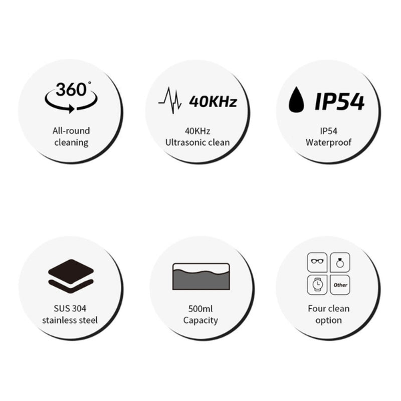 • 4種清洗模式(眼鏡2分鐘、首飾3分鐘、手錶3分鐘、其他4分鐘)可供選擇。