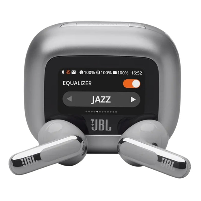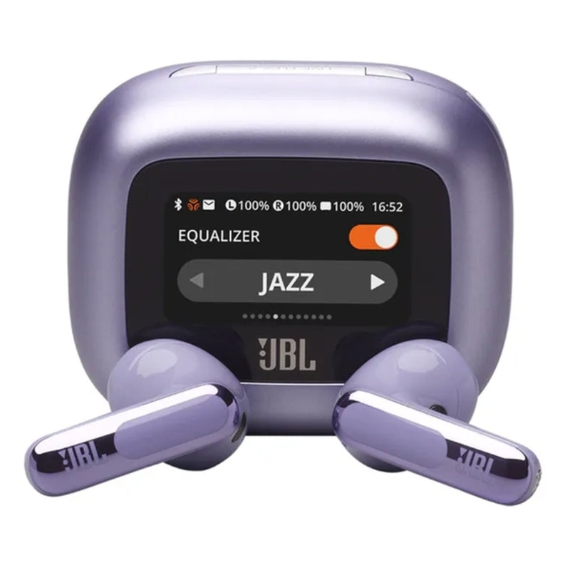 您可以使用 Smart Charging Case™ 上的 1.45 英吋觸控螢幕,自訂 JBL Live Flex 3 耳機的各個方面。顯示器可讓您完全控制筆記型電腦、電視、智慧型手機或平板電腦等任何裝置的聲音,而無需在智慧型手機上存取 JBL 應用程式。