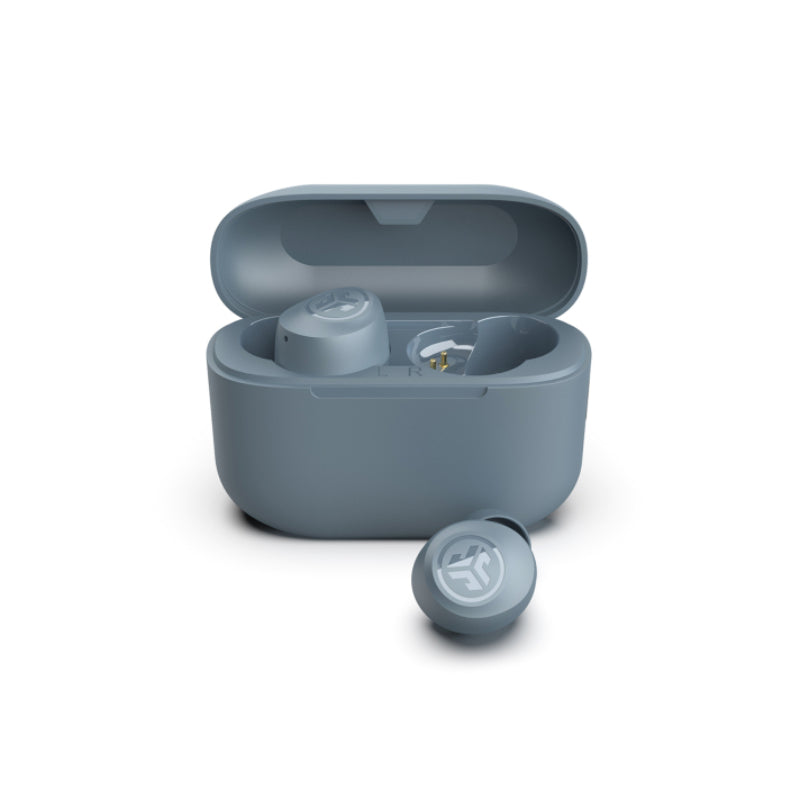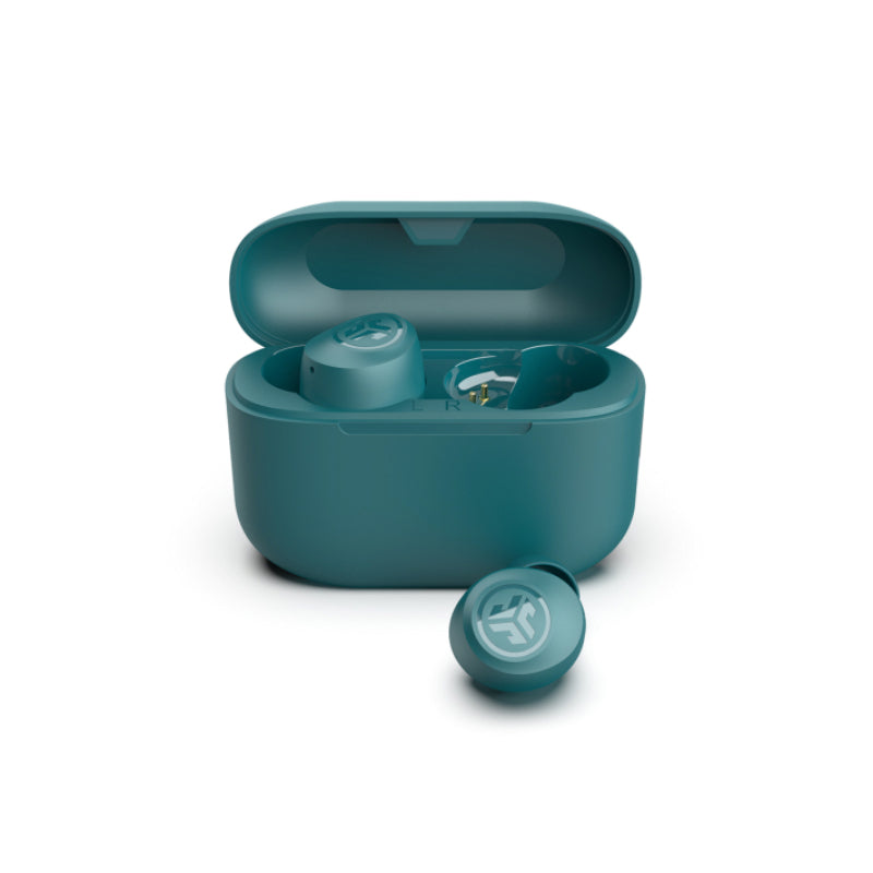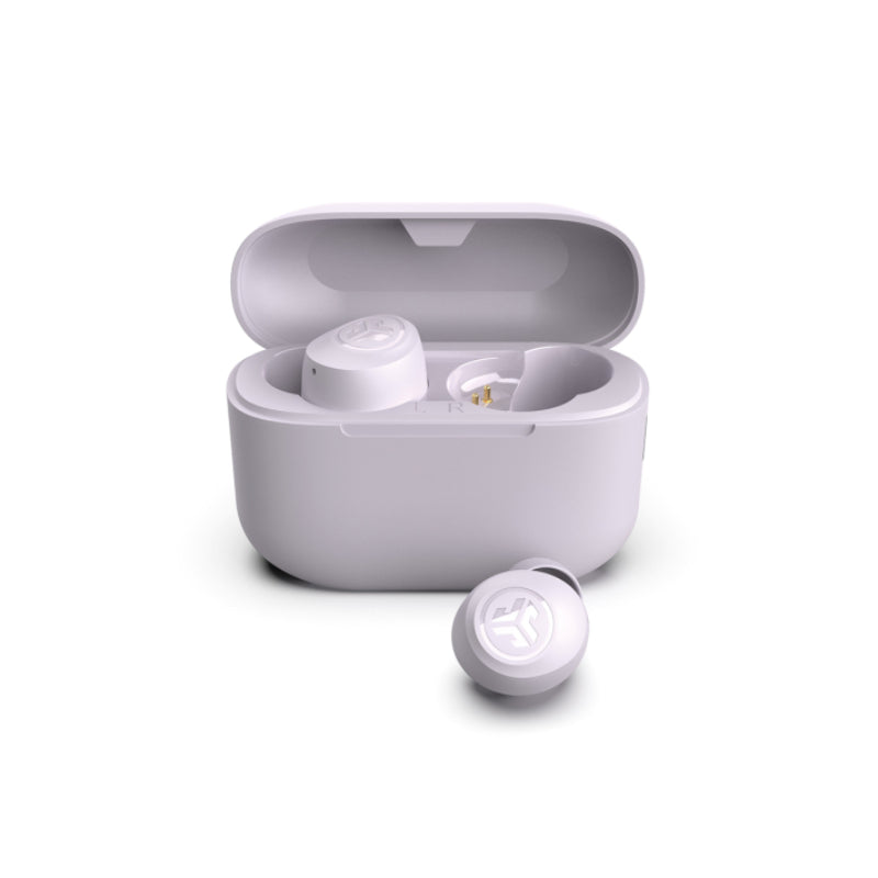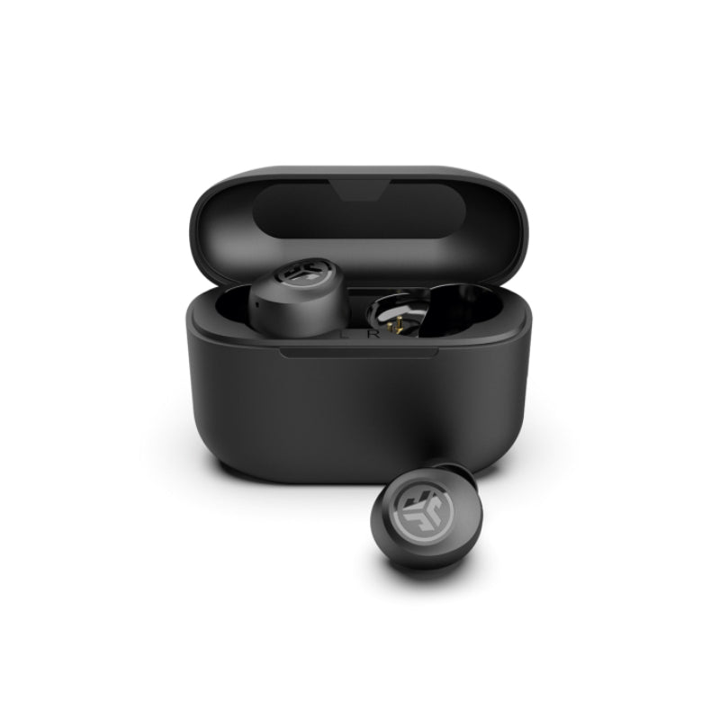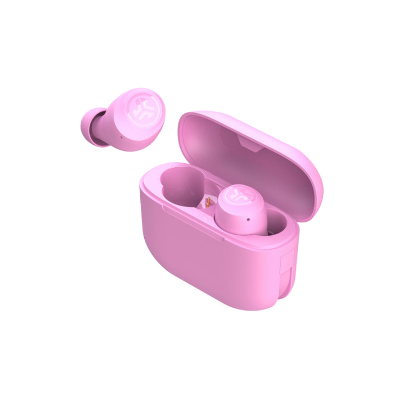 GO Air POP 真無線耳機,帶集成 USB 充電線的充電盒,3 套凝膠頭:小號、中號、大號,JLab兩年保修。