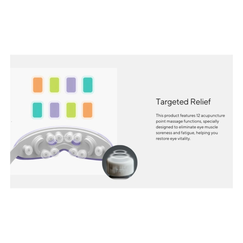 - 具備12個穴位震動按摩功能(2檔),緩解眼部肌肉酸痛和疲勞,讓眼睛煥發活力