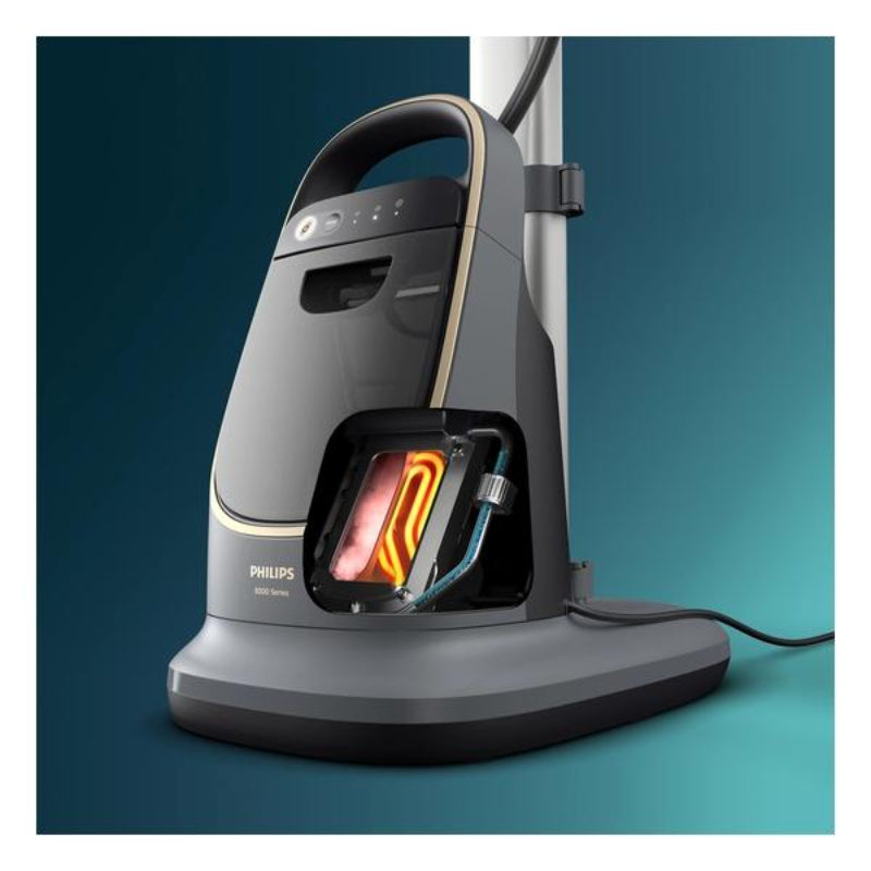 Philips All-in-One壓力式蒸氣熨燙系統8500系列設多角度熨衣板,不同角度輕鬆熨燙。雙重蒸氣升溫技術帶來更強勁蒸氣,而且效能強大。創新免調校溫控技術同時保證不熨焦。
